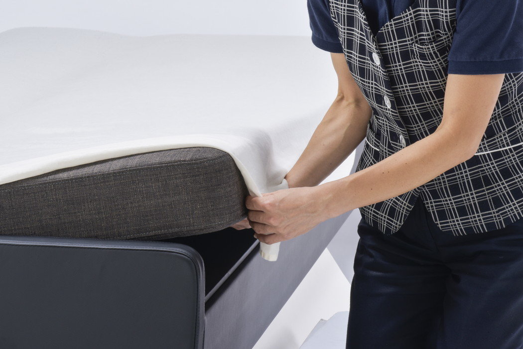 ベッドタイプの中で、マットレス部分の取り外し&交換可能なものに関しては、一般的なシーツをベッドマットレス部分に巻き込んで使用できます。かぶせ方は簡単。通常のベッド同様にシーツを巻き込みます。
