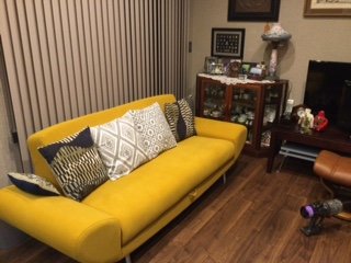 門司では色々ご説明頂き、後日、生地見本もお手配くださり大変お世話になりました。10月18日にソファーも届き、今月やっと荷物も片付きソファーで寛げるようになりました。(ひと月に一度の帰省ですので、なかなか片付きませんでした)