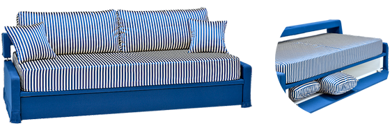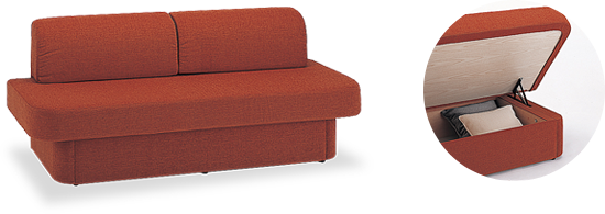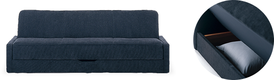 ソファ時の背クッションが内蔵できます。また、シーツやその他の寝具も内蔵できるのが非常に便利。