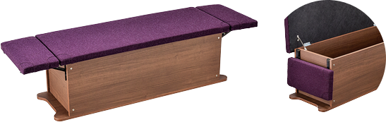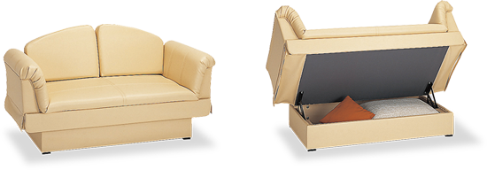 ホテルなど収納スペースが少ない空間で大活躍します。背クッションが充分に収納でき、その他寝具も隠せる収納です。