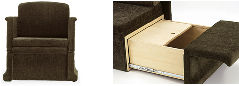 コンパクトな1人掛けチェアベッドに一見してもわからない様な収納庫がついています。