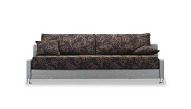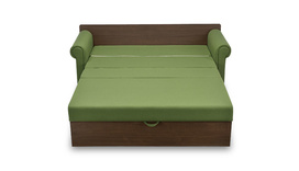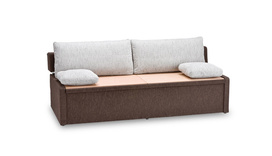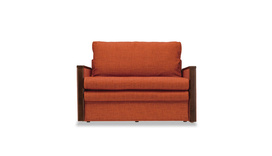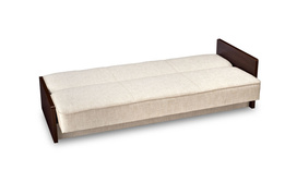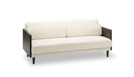 背にウォールナット色の背板が付く従来のソファベッドでは考えられなかった斬新なデザイン。ベッド時にはアオリコイルスプリング内蔵のソファベッドです。