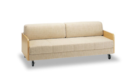 前面ローリング式タイプのソファベッドは壁際のデッドスペースが少なく、座面の下などを有効活用し、快適な宿泊空間を演出します。