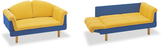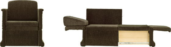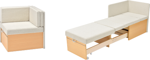 チェアベッドとしては最小サイズの奥行き640mm。とにかくスペースを確保したい時にこのチェアベッドは最適です。木目柄のパネルは汚れが目立ちにくく、高級感を与えてくれます。