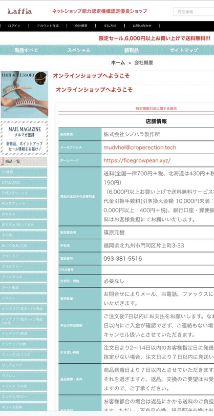 弊社、株式会社シノハラ製作所(北九州市門司区片上町3-33)と偽サイトはまったく関係がありませんので、お気を付けください。偽サイトは電話番号、メールアドレスが異なります。電話をかけると使用されていない番号になります。